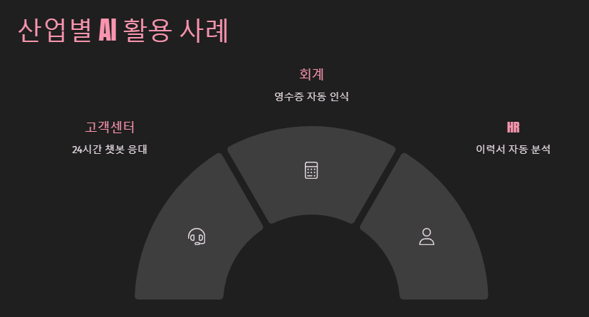 AI는 반복적인 업무를 자동화하고, 생산성을 극대화하는 데 핵심 역할을 하고 있습니다. 예를 들어 이메일 자동 작성, 일정 관리, 회의록 요약, 문서 작성 등 기존에 시간이 많이 소요되던 작업들이 AI 덕분에 빠르게 처리됩니다. 대표적인 도구로는 ChatGPT, Notion AI, Grammarly 등이 있습니다. ChatGPT는 사용자의 지시어(prompt)에 따라 복잡한 문장을 작성해주고, 회의 요약이나 고객 응답 스크립트를 자동으로 작성할 수 있습니다. Notion AI는 업무 메모를 정리하고 간단한 보고서나 블로그 초안을 만들어주는 데 유용하며, Grammarly는 문법 오류 수정뿐 아니라 문장의 뉘앙스를 조절해주는 데도 탁월합니다. 이 외에도 다양한 산업 분야에서 AI의 업무 적용 사례는 늘어나고 있습니다. 고객센터에서는 챗봇이 사람 대신 24시간 응대하고 있으며, 회계에서는 영수증 자동 인식, 세금 계산 자동화 등의 기능이 널리 활용되고 있습니다. 또한 HR 분야에서도 이력서 자동 분석, 채용 후보자 추천 등에서 AI가 활약하며, 사람의 판단을 보완하고 빠른 결정을 도와줍니다. 즉, AI는 단순 반복 업무를 줄이고, 인간이 더 창의적인 일에 집중할 수 있는 환경을 만들어주고 있습니다.